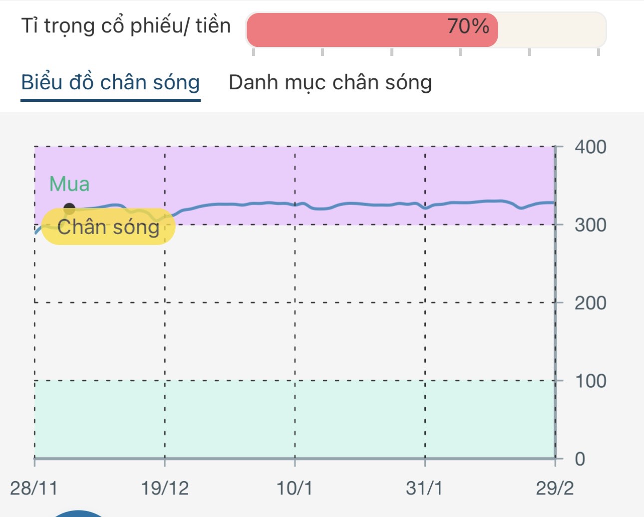 Biểu đồ chân sóng của Thị trường đo tín hiệu dòng tiền Thông minh trên Thị trường sẽ giúp NĐT nắm bắt được thời điểm dòng tiền thoát ra và Thị trường vào pha điều chỉnh. Chân sóng sẽ được xác nhận khi Thị trường có dấu hiệu tạo đáy, dòng tiền thông minh vào đủ mạnh và Thị trường quay lại xu hướng tăng. Từ đó Robot ICE Chân sóng trên APP ICEinvest sẽ khuyến nghị cho NĐT giải ngân tại chân sóng và cả Danh mục những mã Cổ phiếu khỏe nhất thuộc các dòng cổ phiếu mạnh có khả năng tăng giá tốt nhất tại chân sóng để NĐT giải ngân tỷ trọng cao nhất tại chân sóng. ICEinvest cũng sẽ có khuyến nghị Bán dần tỷ trọng cổ phiếu theo chiều tăng của Chu kỳ sóng hoặc khi dòng tiền thông minh có tín hiệu thoát ra khỏi Thị trường.