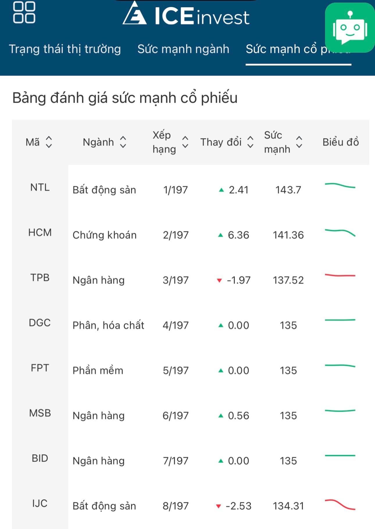 8. ICE.AI Bot khuyến nghị Mua cổ phiếu theo sức mạnh cổ phiếu