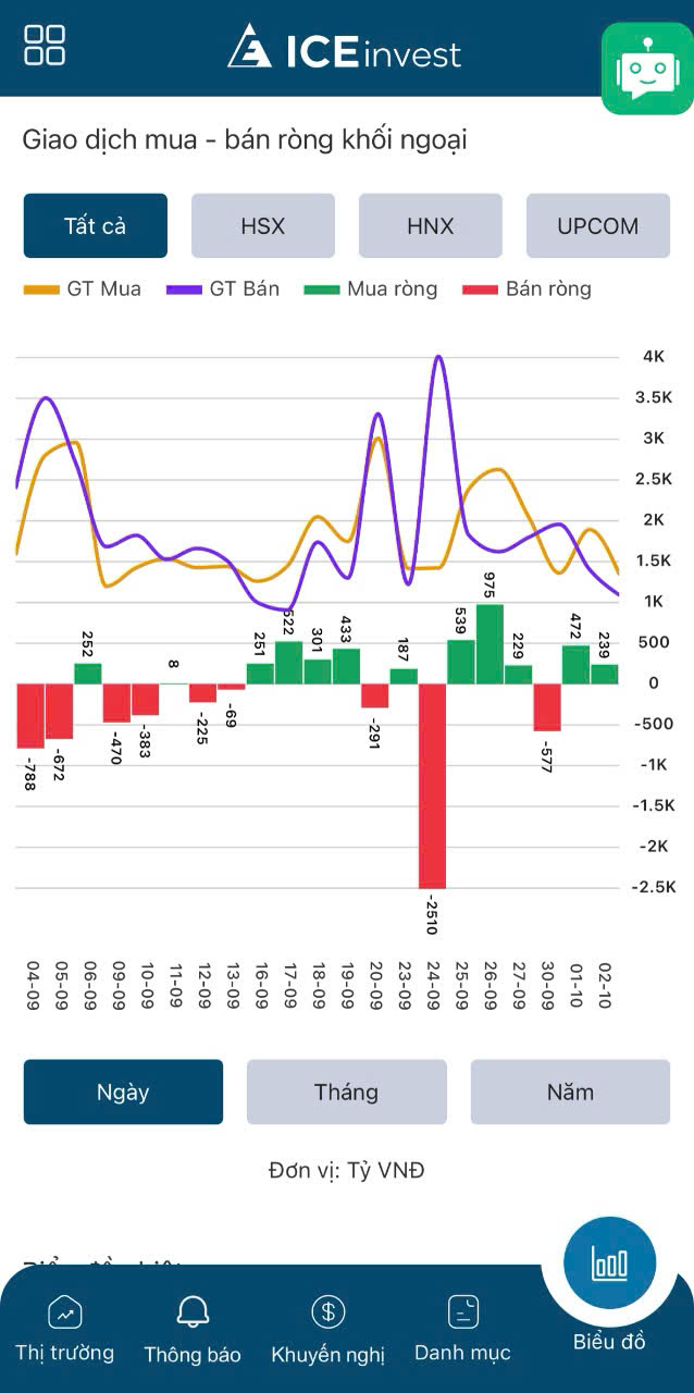 Dữ liệu Mua – bán ròng của Khối Ngoại và Tự doanh được cập nhập liên tục ngay trong phiên trên ứng dụng ICEinvest.